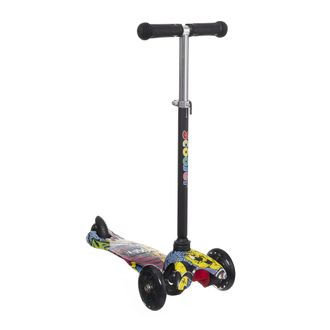 Стандартный трехколесный самокат Mini со светящимися колесами и регулируемым рулем. Родителям нравится его невысокая цена и приемлемое качество. Самокат разбирается на платформу и руль нажатием кнопки. В таком виде его удобно переносить и перевозить.